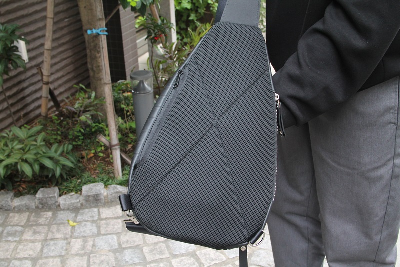 なんと背面は緩衝材付きのメッシュ素材になり、更に独立したファスナーポケットが使用可能!