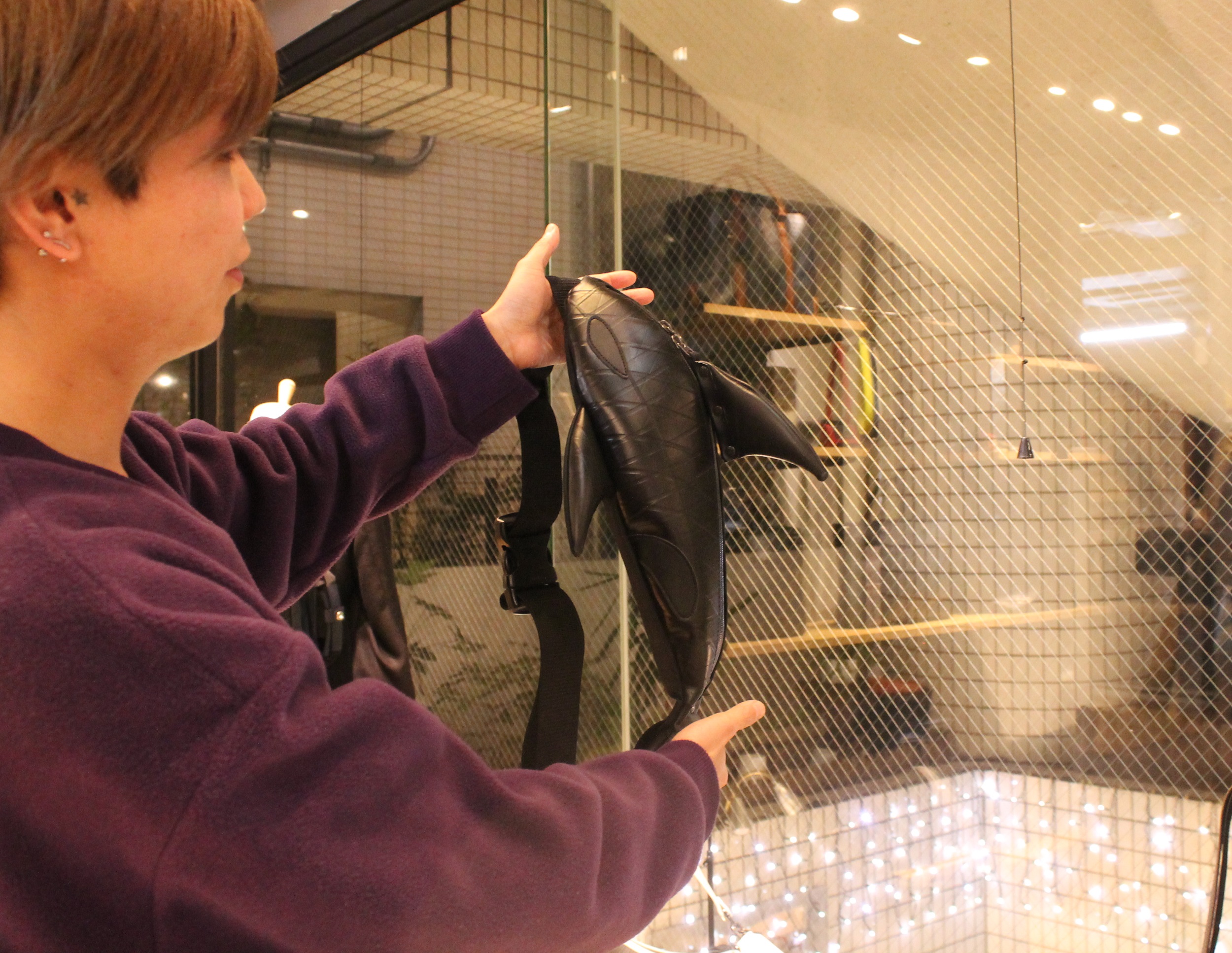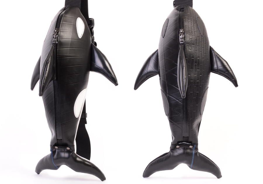 タイヤチューブの質感や湾曲といった、素材そのものの持ち味からインスピレーションを得たシャチモチーフのお鞄です☆
