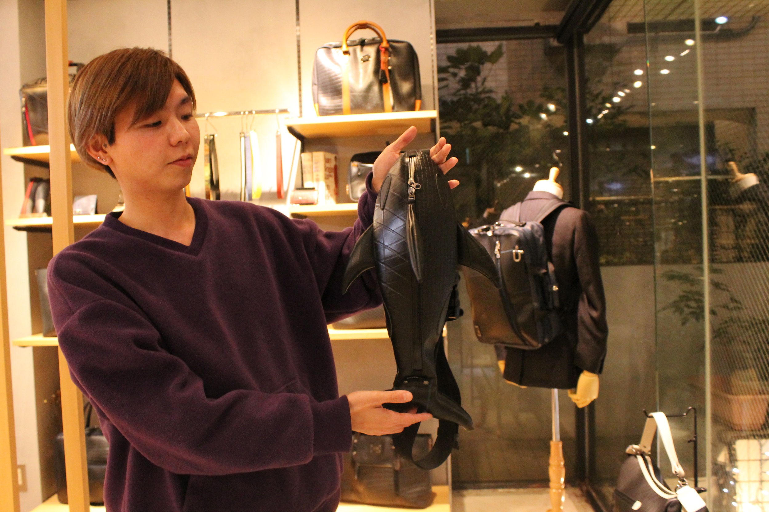 店長「背負い心地もすごくいい!意外と大きいサイズのワンショルダーですね。」