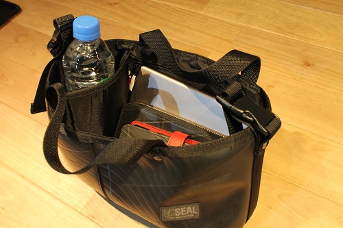 自転車やベビーカーなどに取り付けて持ち運ぶ事も考えたこちらのマルチバッグ。