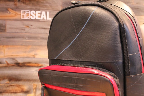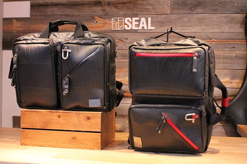 黒いチューブに綺麗に青い線が入っているのもリサイクルのタイヤチューブならではの面白さが表れていますね。
