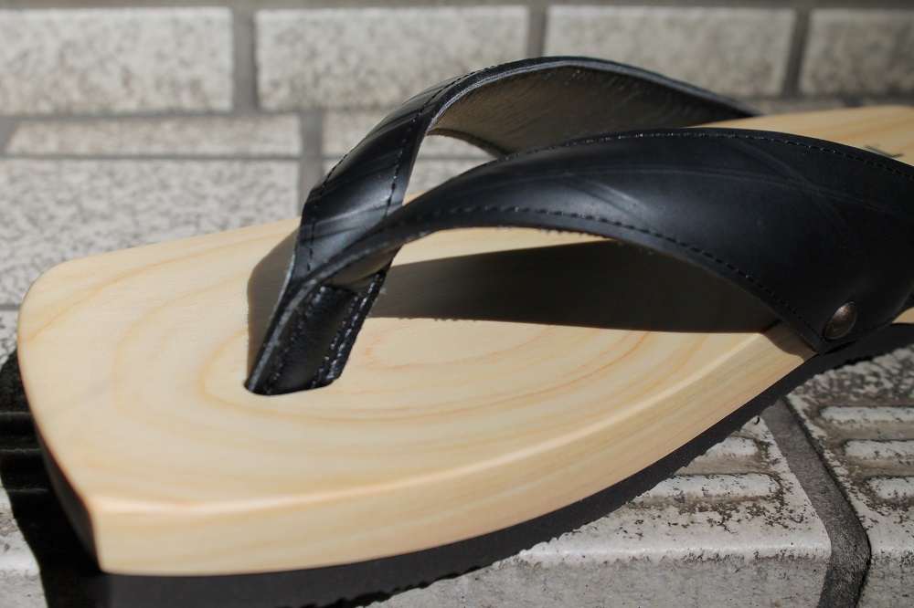 下駄に使われている木は静岡産のひのきを使用。しっとりとした質感の履き心地に。