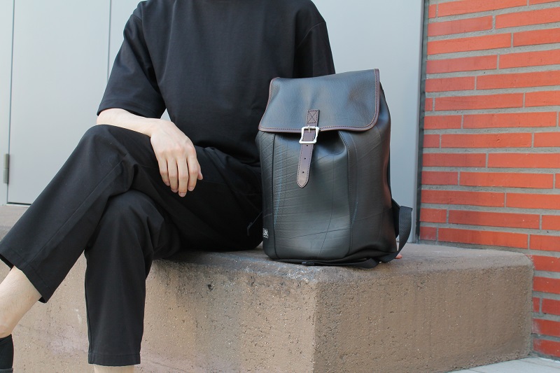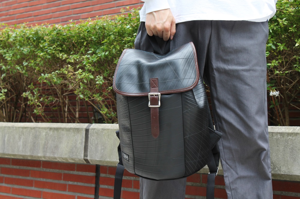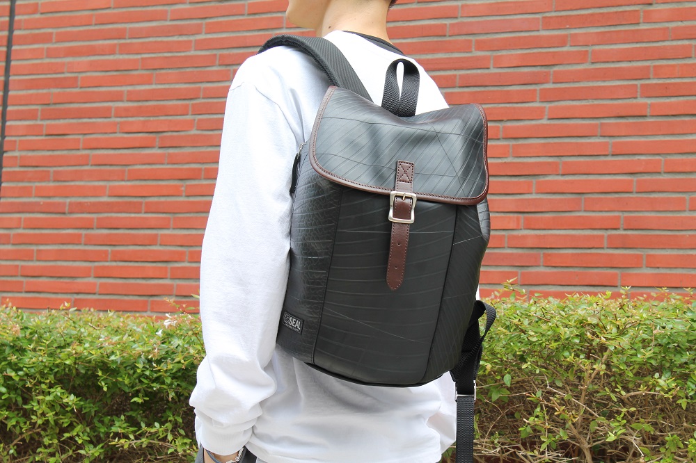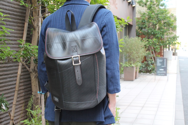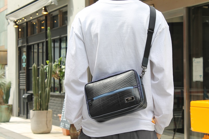 帆布とタイヤチューブを交互に配列し、ブラックとネイビの2色でまとめた製品はバランスが良く、どのような場面にも使って頂ける製品になっております。
