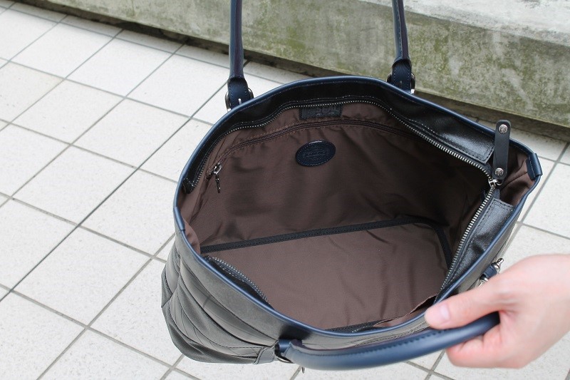 かさばる荷物でもスムーズに入るマチ幅はバッグの自立も容易にしてくれるプラスアルファのポイントがございます。