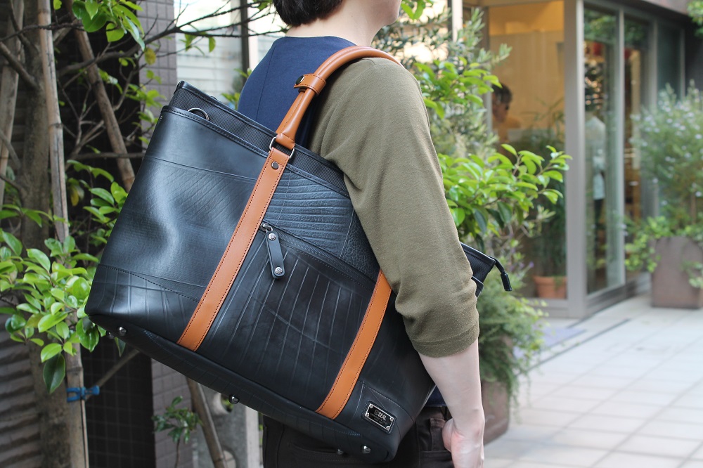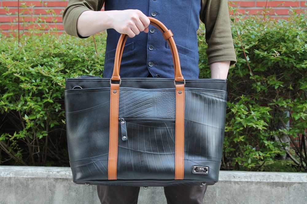 今回のデザイナーズビジネスバッグDUOはタイヤチューブの比率が多い製品ですので、SEAL独特の他にはないバッグのニュアンスやデザインが表現されています。