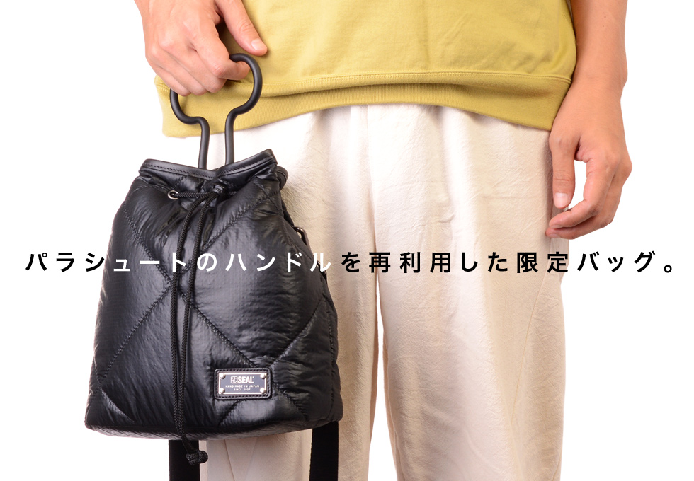 巾着の特徴的なフォルムを藤倉パラシュート素材とのコラボで再現!