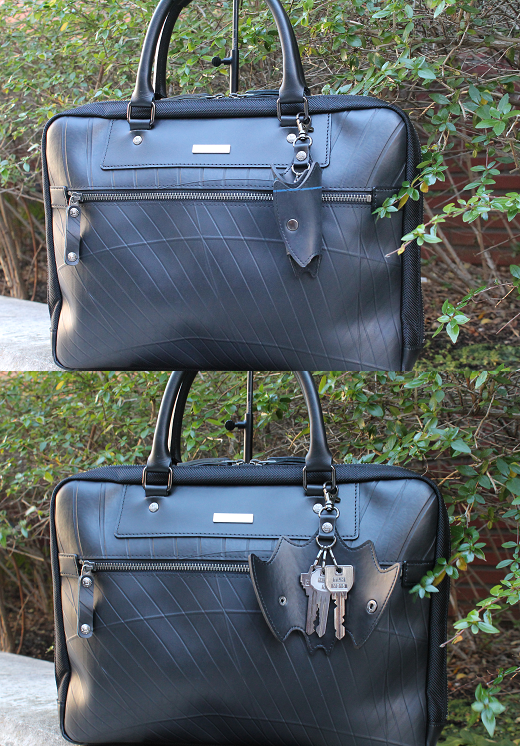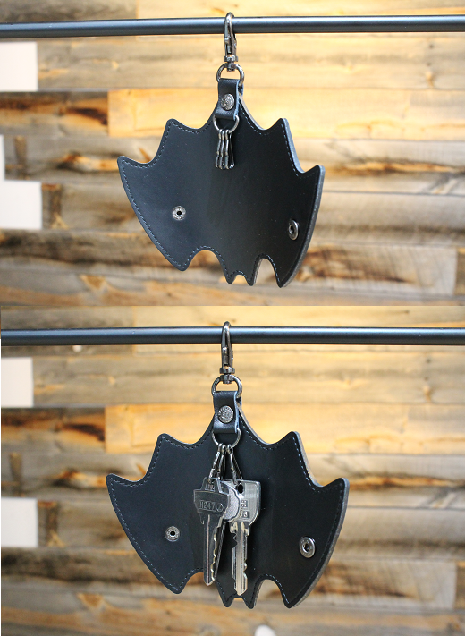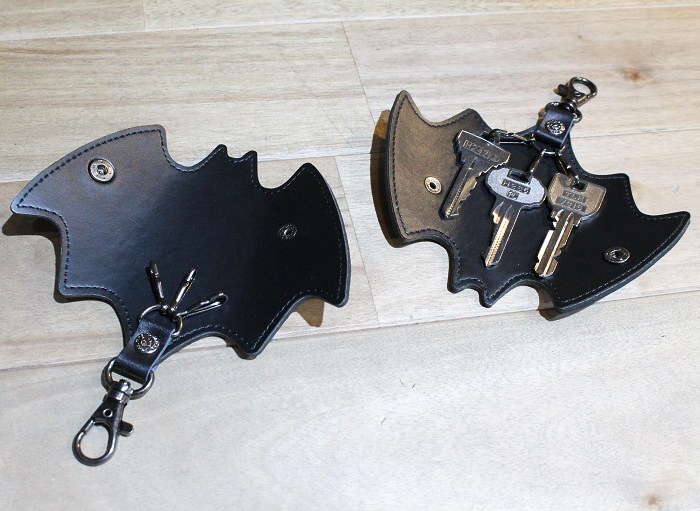 逆さまにキーケースを吊ると、コウモリが寝る際に枝などに掴まっているような体勢のデザインになります!