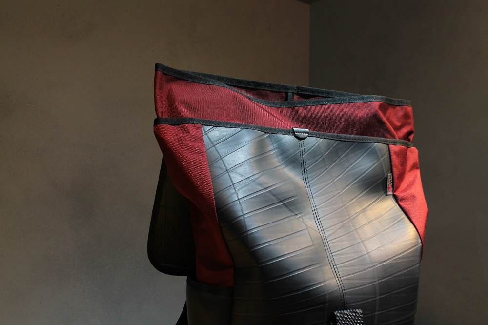 メインポケットの口周りには雨除け用のナイロンを搭載。