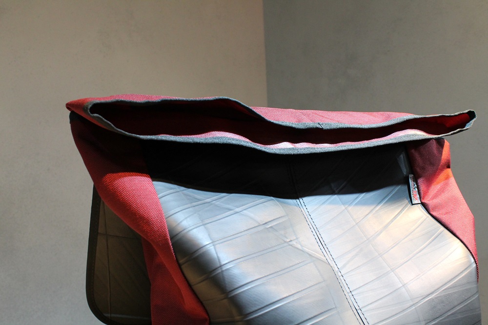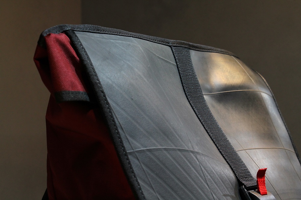 底面がチューブなので気兼ねなく床に置きやすい。背面部分は緩衝剤入りのクッション性の高い素材で、背中への負担を軽減。シンプルな外見からは想像できない、強力な接着力のマグネットフラップ。