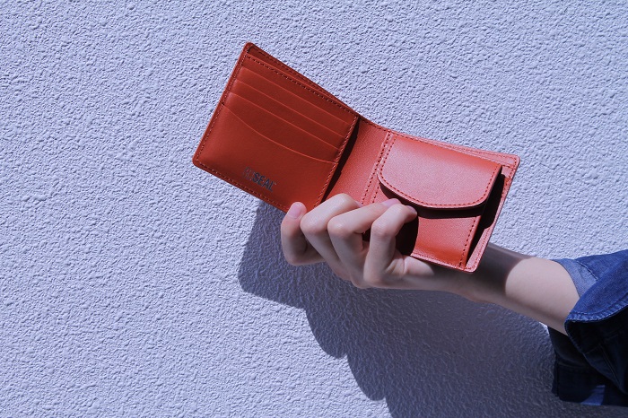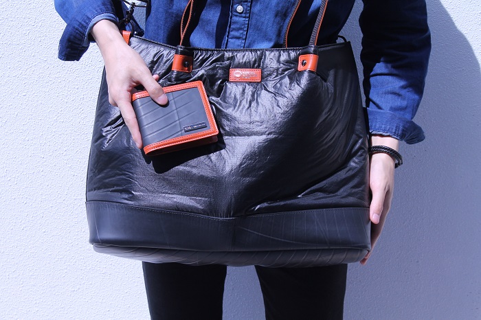 ちなみにトートバッグと一緒に写っている二つ折り財布は新色でオレンジが入荷したばかり!