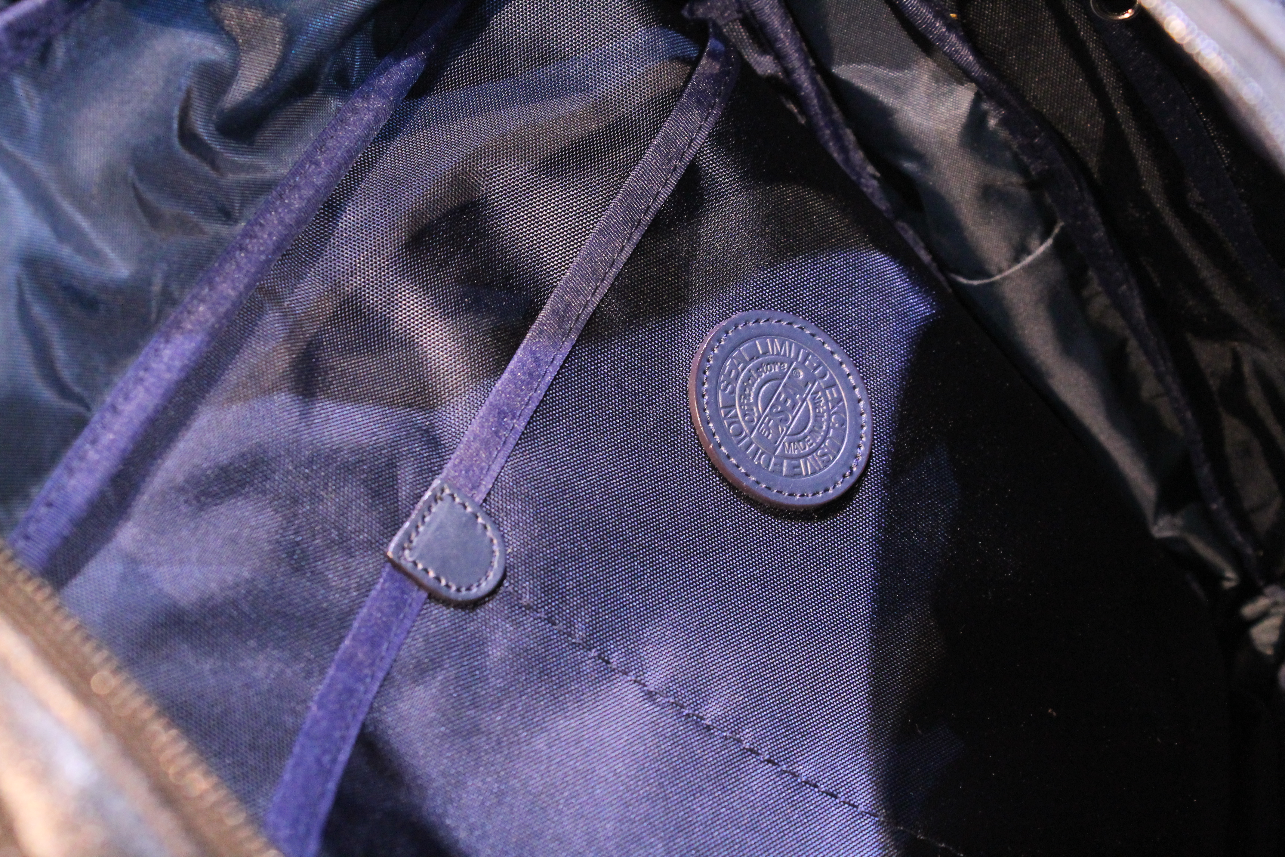 中のカラーはネイビーを採用。限定のロゴもしっかりと。