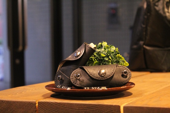 お客様ご自身にカードケースを手作りして頂けくだけでなく、素材であるタイヤチューブの柄選びまで行って頂きます。