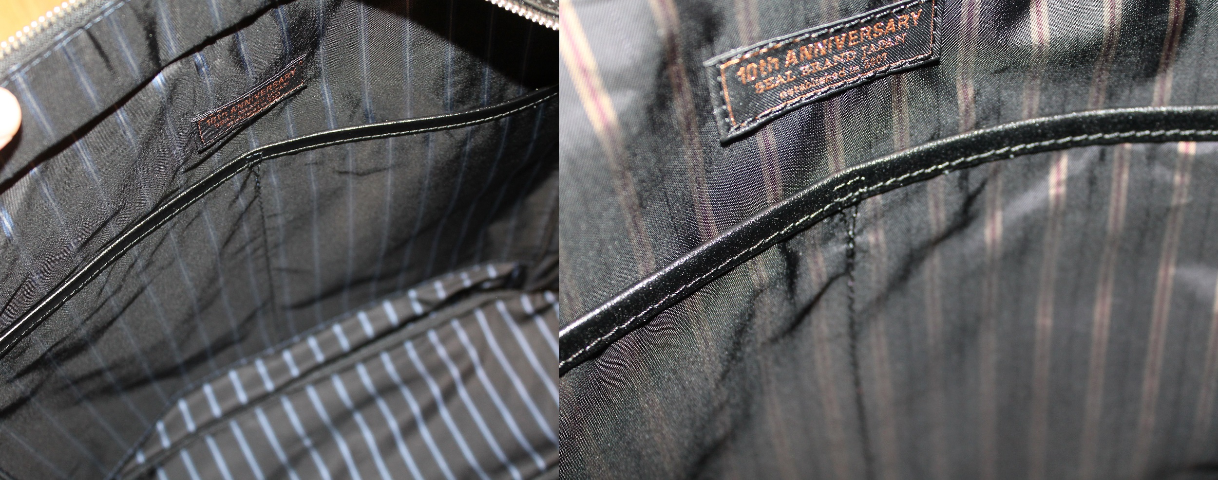 前回入荷したストライプビジネスバッグと同じ配色。 キメが細かくなめらかな上質のテープを使用し、職人の細かな作業を感じることができる逸品です