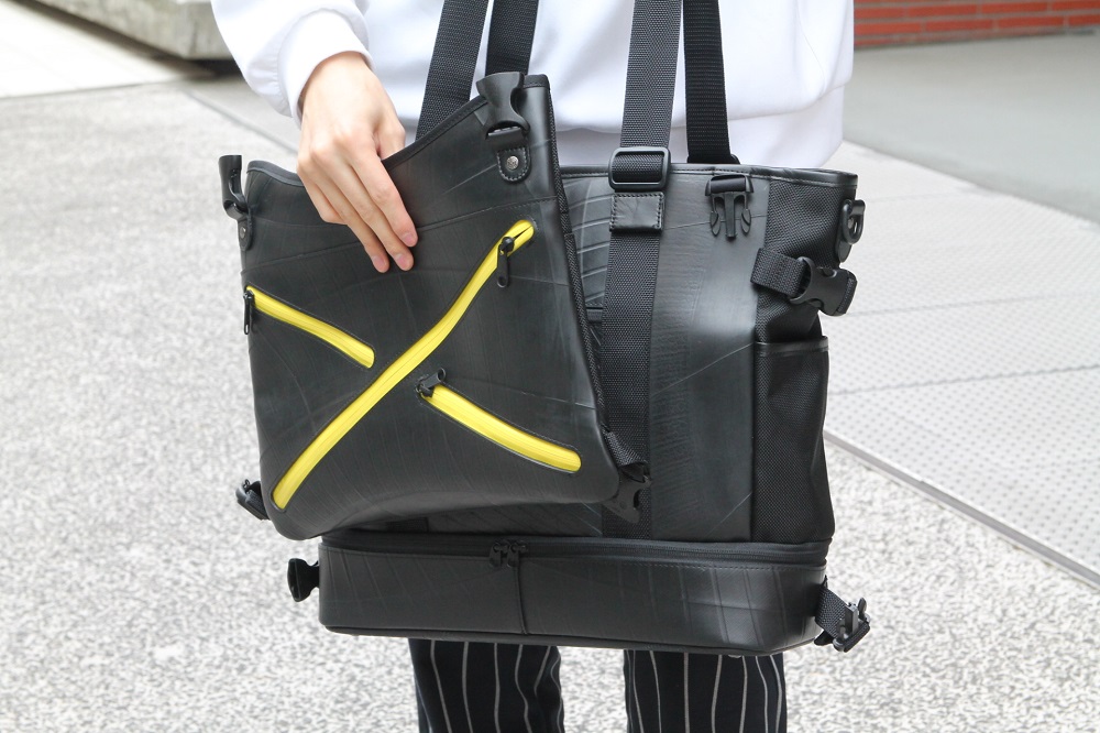 トート1つだけでも十分な容量がありますが、ショルダーバッグも含める事でより様々なシーンを想定し対応出来るバッグになっております。