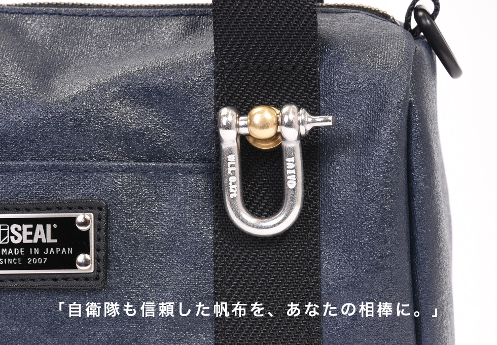 海上自衛隊でも採用される最高峰の耐久素材「森野帆布」を贅沢に使用し、日本が誇る職人が仕立てた、ミニボストンバッグ。細部にまでこだわった作りと丁寧な縫製が魅力。オリジナルのシャックルチャームも付属。しっかりマチを取ったメイン収納は見た目以上の大容量で、ファスナー式でセキュリティ面も安心。背面/前面ポケットも搭載。底面にはタイヤチューブを採用。地面にそのままおいていただけます。汚れてしまってもサッと水拭きでOKです。