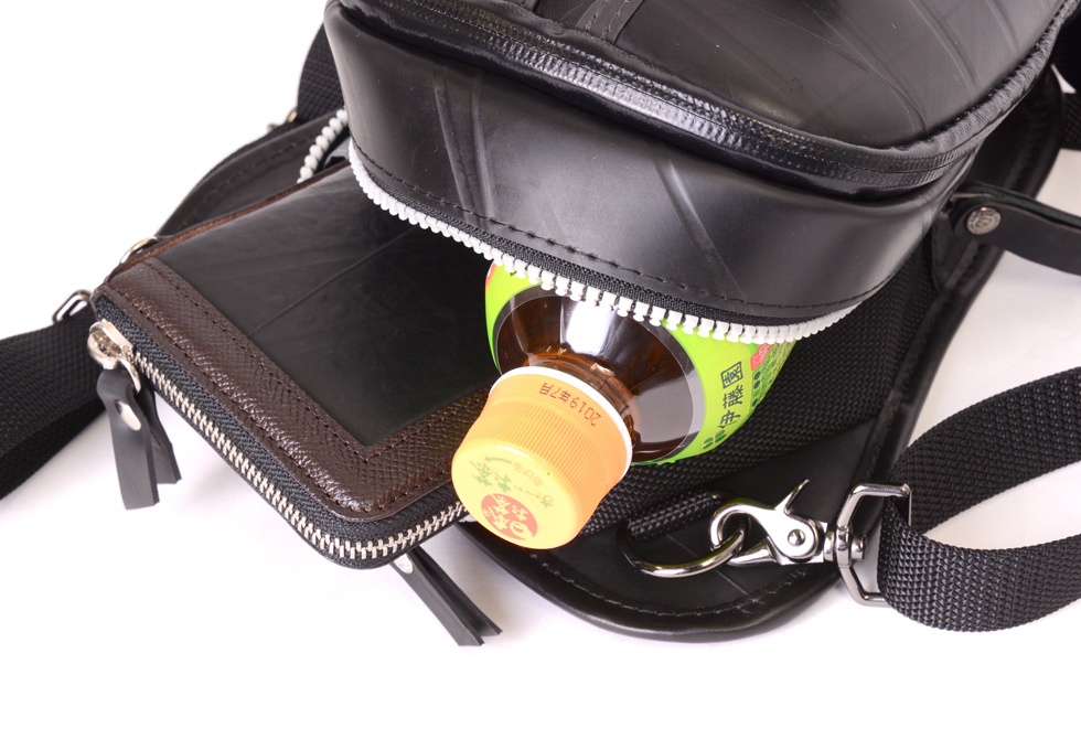 | 素材 | :タイヤチューブ/革/ナイロン/蓄光ファスナー/反射材 |