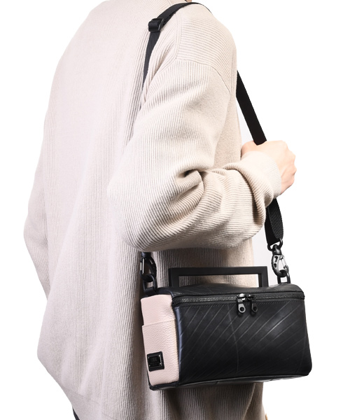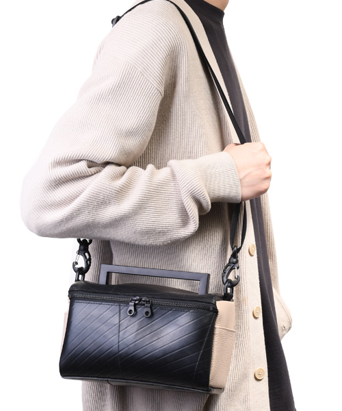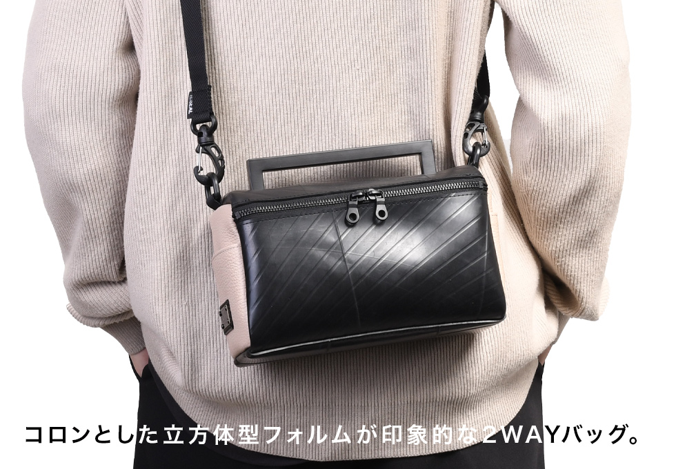 コロンとした立方体型フォルムが印象的な2WAYバッグ。