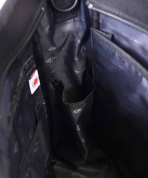 | スペック | :メイン収納×1 :PC収納×1(13インチ) :ファスナーポケット×1 :フリーポケット×2 :サイドポケット×2 :キャリー用ベルト×1 :外装/サイドポケット×2 :外装/クイックポケット×1 |