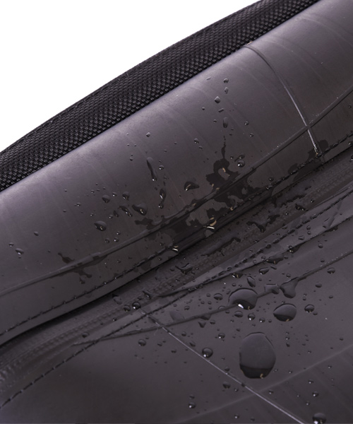 「防水×薄型」雨の日を気にしない。スリムな防水ビジネスリュック。 ビジネスにも普段使いにも活躍する薄型のビジネスリュックが防水モデルになって新登場。 タイヤチューブ、止水ファスナー、防水ナイロンが圧倒的な防水性能を作り出し、突然の雨にも安心してお持ちいただけます。 15インチのMac book proまで収納可能な緩衝材入りのPC収納。A4ファイルも楽々収納可能なボディながら驚くほどコンパクト。 人混みや電車でもスマートに持ち運びが可能です。 表面にはタイヤチューブ、そこ面には1680dの強靭なナイロンを使用し非常にタフで防水性・防汚性に優れたリュックです。 背面・ショルダー部分はメッシュ加工を施しており、暑い時期でも快適にお持ちいただけます。 このビジネスリュックは、一個辺り約1700gのCO2が削減されます。