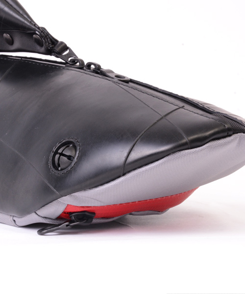 国内職人の緻密な技により複雑な形状を再現した、まるでアート作品のような遊び心溢れるボディバッグです。タイヤチューブの持つ質感や曲線を活かした本来のフォルムからインスピレーションを得てデザインされ、 親子で揃ってご利用も頂ける丁度良いサイズを緻密に計算をして開発しています。可愛らしい見た目からは想像が出来ない程しっかりと入る容量も魅力です。 くち型のポケットにはスマホや子供ケータイなども収納可能。目はイヤホンジャックにもなり、機能性も抜群です。