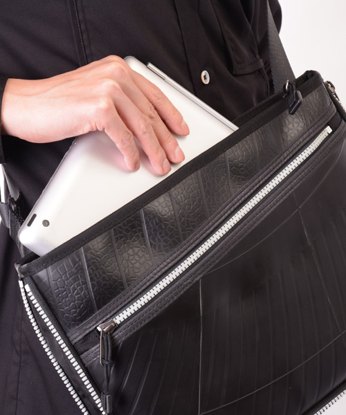 | 素材 | :タイヤチューブ/蓄光ファスナー/反射材/BEATTEX(ビートテックス)/革 |