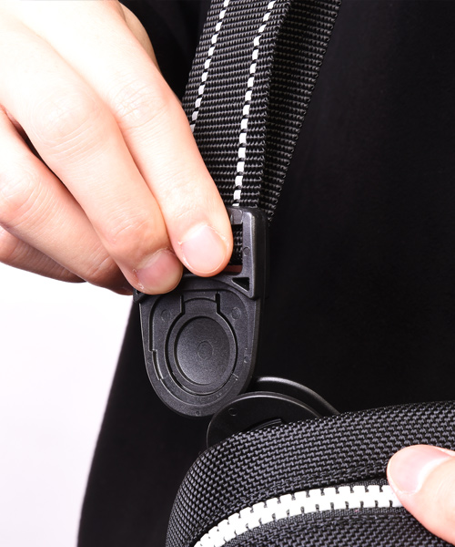 夜の移動を安全にする「ナイトライドモデル」のオーガナイザーショルダーバッグが数量限定で登場。 従来品の10倍の残光輝度と初輝度を持つ「N夜光(ルミノーバ)」を採用した専用ファスナーと蓄光素材の引き手が、背後からの視認性を高めます。 ファスナー周りの反射素材とショルダーベルトに編み込まれた反射素材は車やバイクのヘッドライトによる視認性をさらに高め、 安全性をさらに高めます。 オーガナイズ性に優れた内装で、全てのものを自在に機能的に収納可能。 貴重な時間を無駄にせず、すばやく目的のものにアクセスできるショルダーバッグです。 前面には日常や外出先で頻繁に使用する、鍵や交通カードなどを収納可能なクイックポケットを搭載。 機能的な内装からは想像がつかない、シンプルな外装でどんなコーディネイトにも合うデザインになっております。 また、ショルダーストラップは脱着可能になっており、インナーポーチやクラッチバッグとしてもご使用になれます。 この脱着可能なショルダーバックルは回転駆動式になっており、ショルダーの長さや体型に合わせて自在に調節してくれます。 このオーガナイザーショルダーバッグ ナイトライドモデルは、一個辺り約945gのCO2が削減されます。